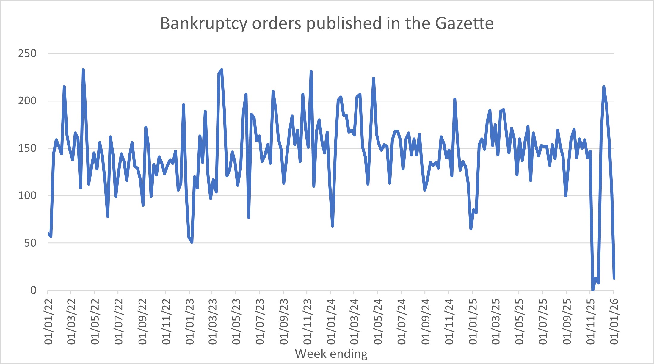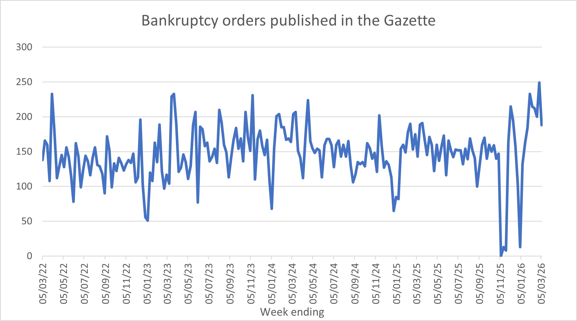 The Insolvency Service’s monthly figures are at https://www.gov.uk/government/collections/company-insolvency-statistics-releases and https://www.gov.uk/government/collections/individual-insolvency-statistics-releases (and pre March-24 stats are at www.gov.uk/government/collections/monthly-insolvency-statistics).